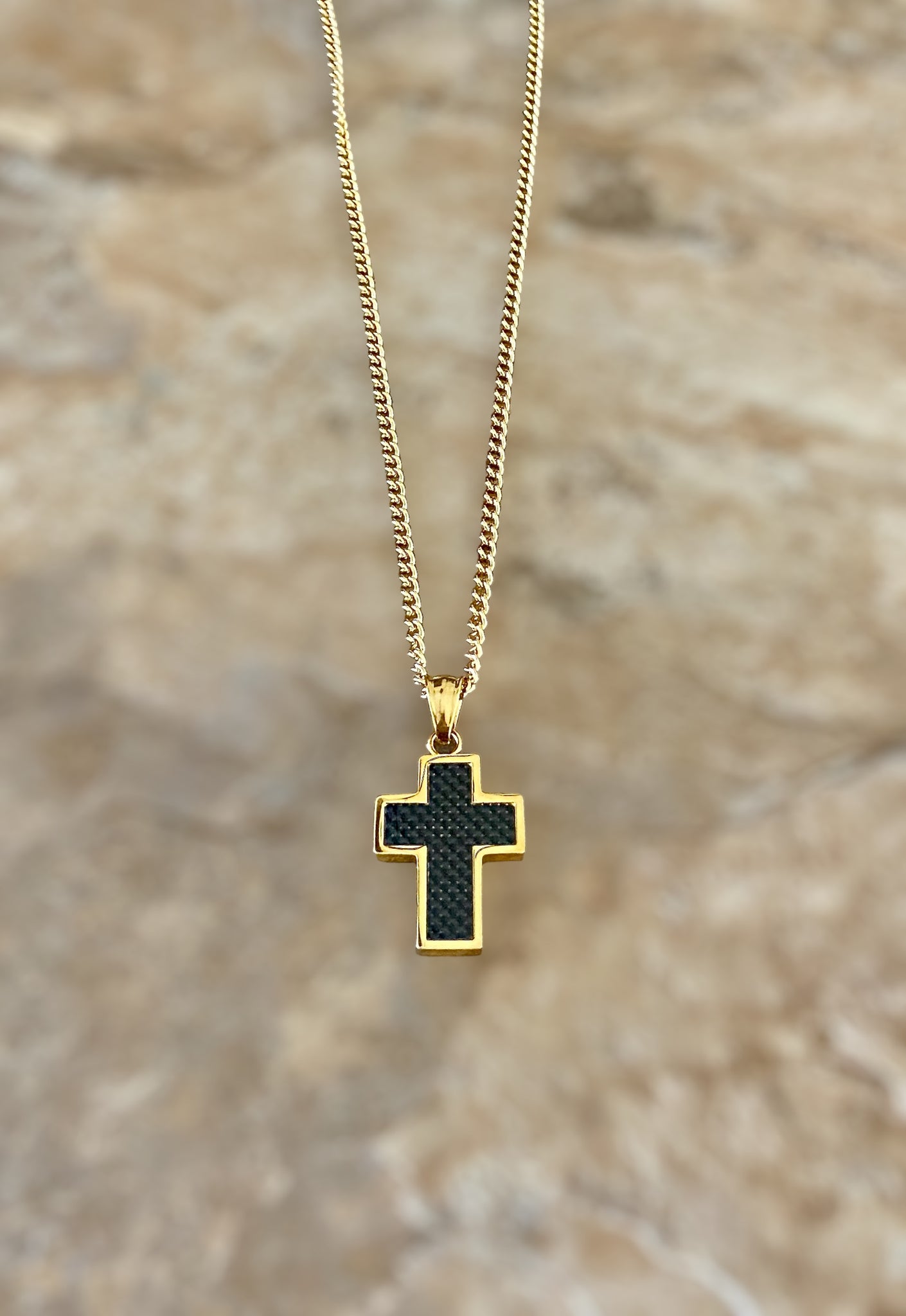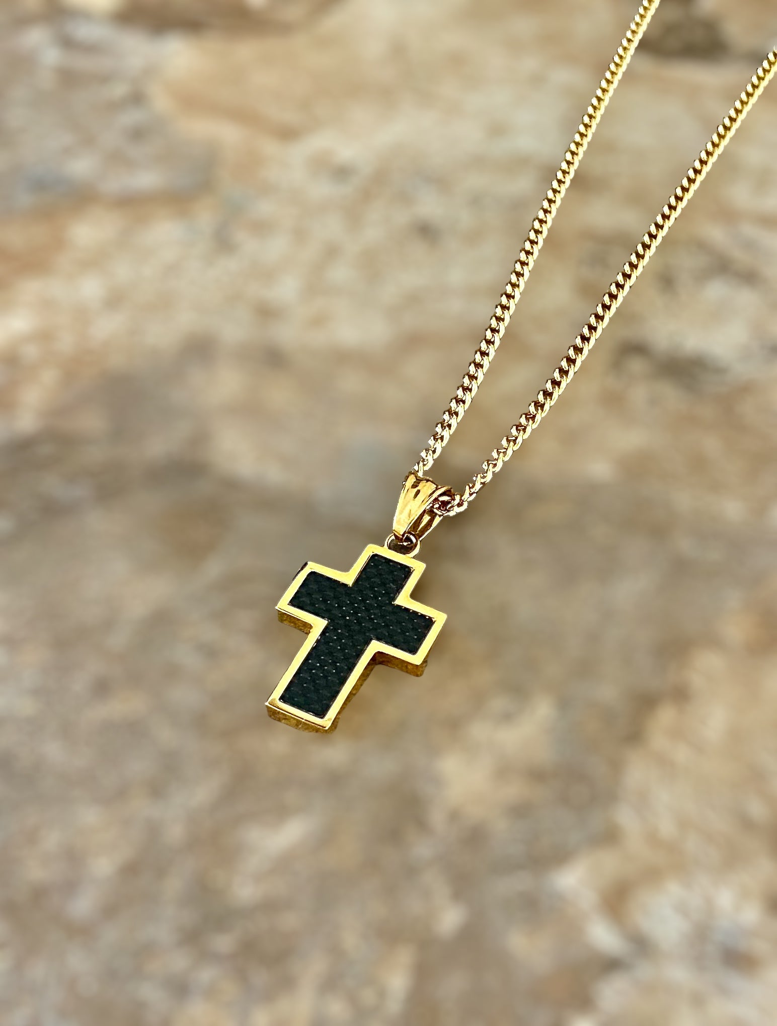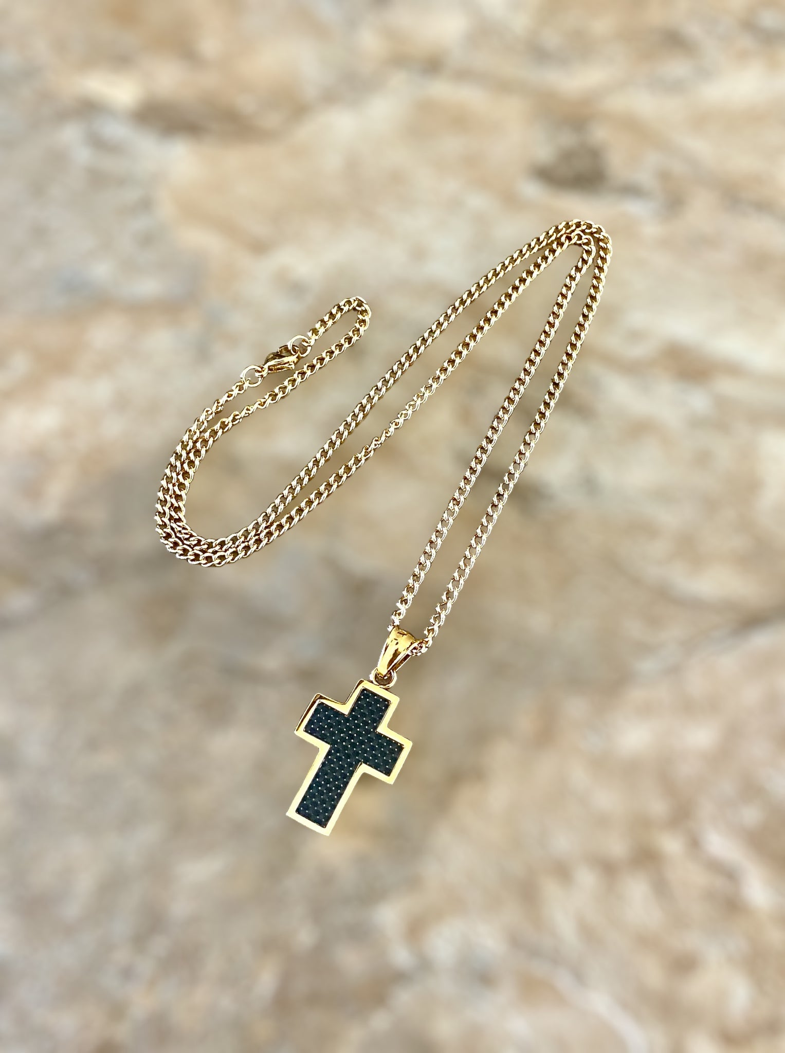 Elevate your style with our Inlay Cross necklace. Made from durable stainless steel with a sleek black inlay, this cross pendant is adorned with a 24" curb chain for a modern touch. Perfect for everyday wear or as a meaningful gift for someone special.