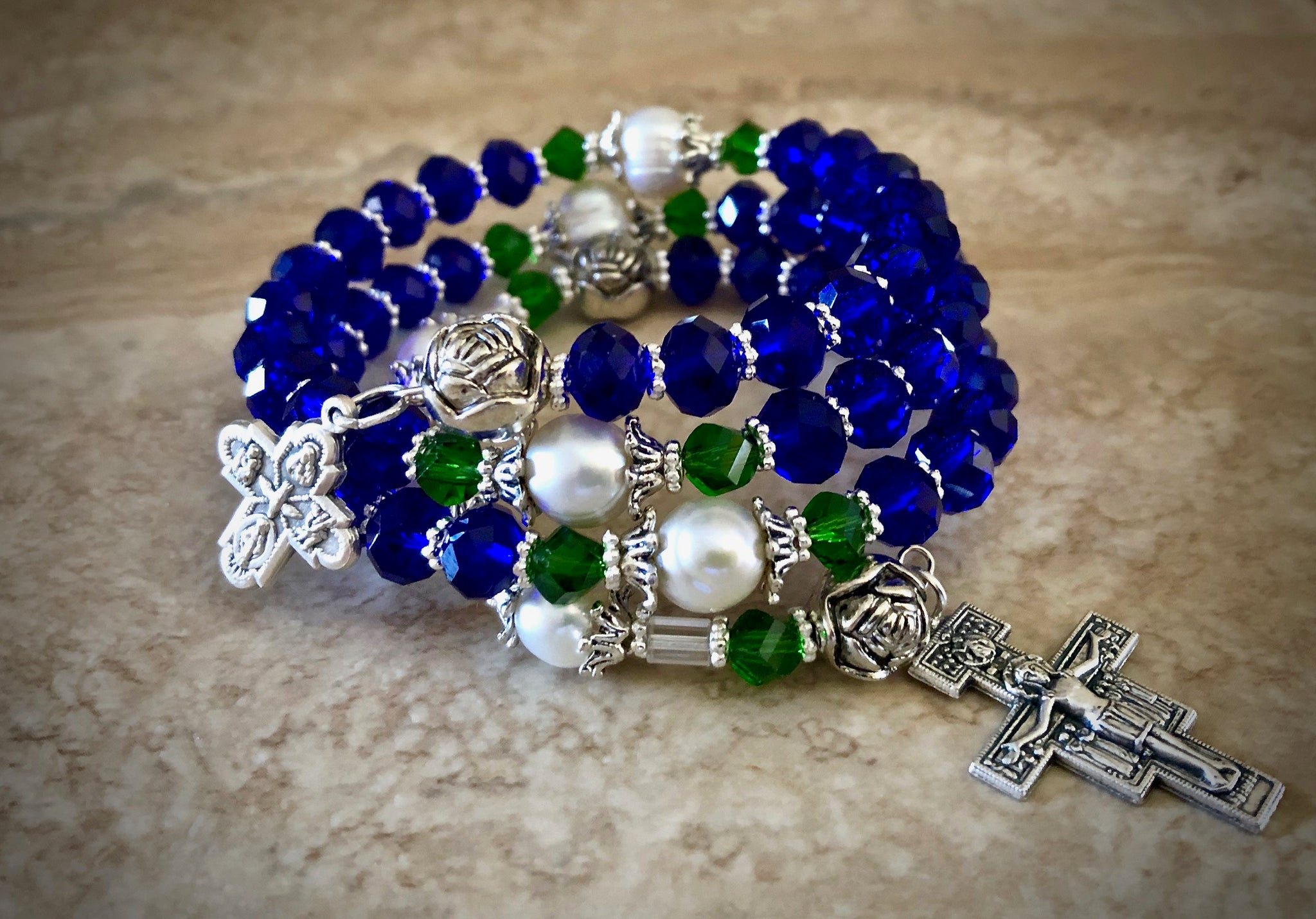 This stunning five decade rosary is handcrafted Czech Crystal Beads and Fresh Water Pearls. From our Images Of Passion Collection, handmade exclusively for SignsOfTheCross in Phoenix, AZ. Wear in confidence.